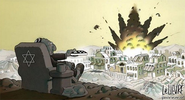 Free Speech latest: Sydney Morning Herald retracts powerful Gaza cartoon (above) – after it makes its point | but is punished (for Star of David and yarmulka): Press Council adjudication on the Cartoon| Berliner Zeitung apologizes for running fake “Charlie” cartoon about Holocaust | The view from Atlanta: Is Europe too dangerous for Jews? “Leading Holocaust historian” shares her rising level of alarm; that’s Deborah Lipstadt, folks, easily alarmed | What Europe needs, more gun worshippers: Europe’s rabbis petition EU demanding laws to allow Jews to carry guns| Mustn’t say that: British police investigate George Galloway MP over “Israel-free zone” comments in (predominantly Muslim) Bradford
