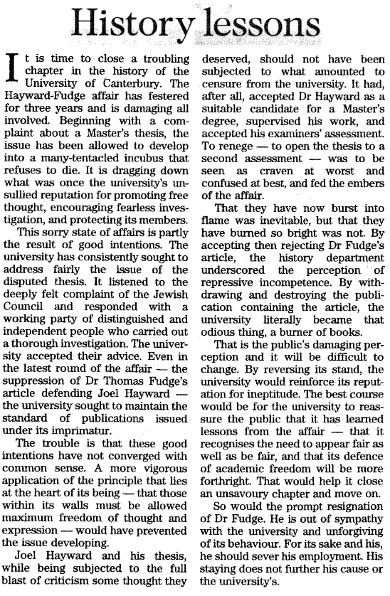 July 2003, NZ Herald: "Holocaust