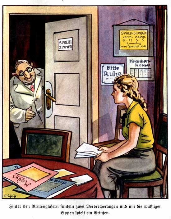 "Behind the pebble glasses twinkle two evil eyes, and there's a grin that flickers across the pudgy lips"