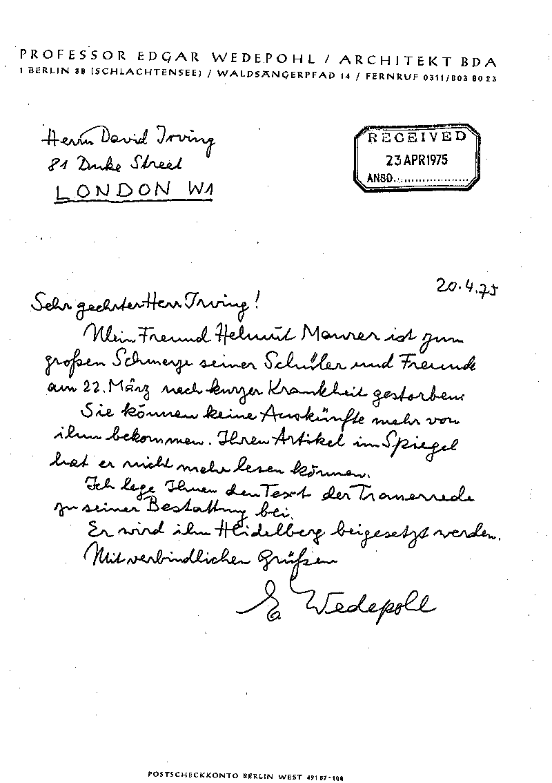 Helmut Maurer died March 20, 1975.