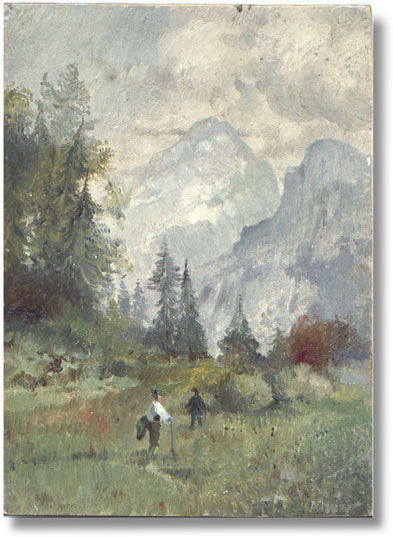 this oil painting on wood in 1975. He reports