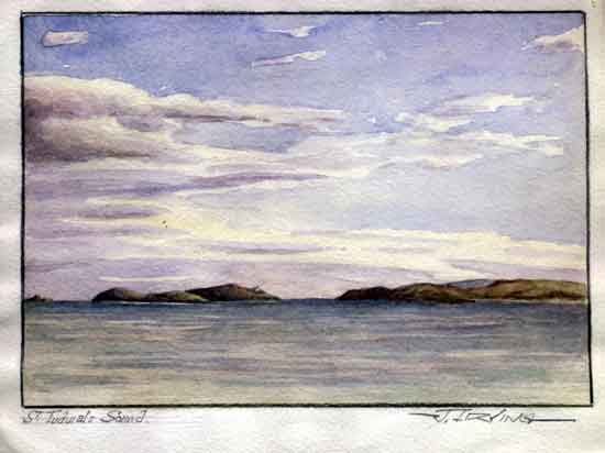 St Tudwal's Sound, water colour by John Irving. His brother Harry wrote on the back: "A water colour by my brother John sent to his mother (with no note or letter) one Xmas before she died"