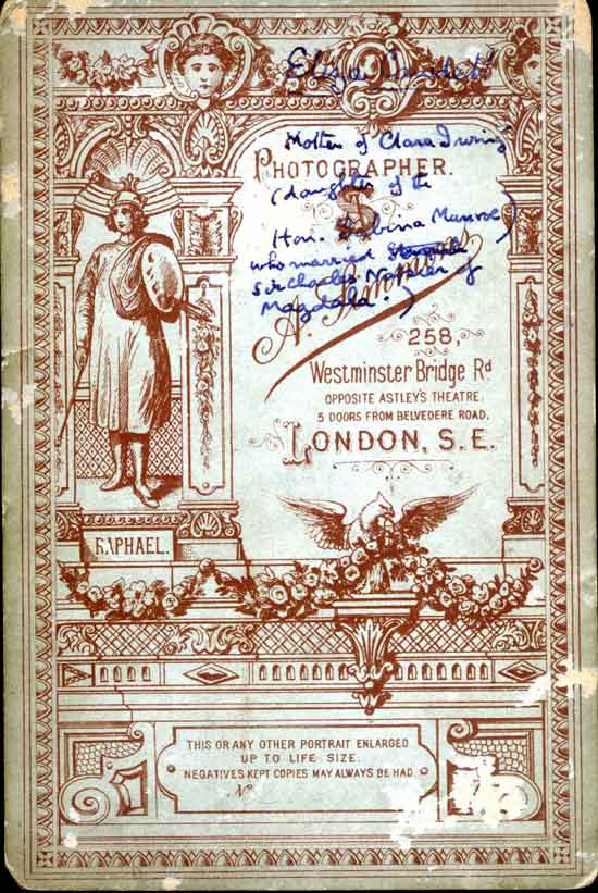 on back by Harry Irving is: "Elisa Cawdell. Mother