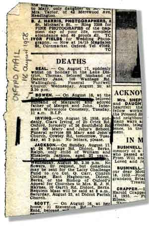 , August 16, 1958; from Oxford Mail, August 18, 1958