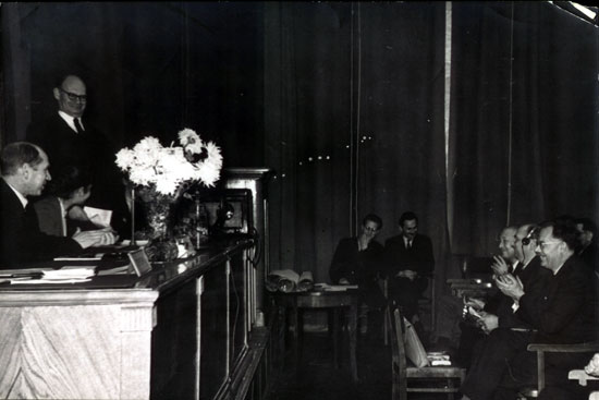 Professor Harry Irving lectured at a scientific conference in Moscow, December 1957.