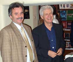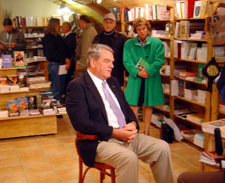 with Channel One, Mr Irving signs books;