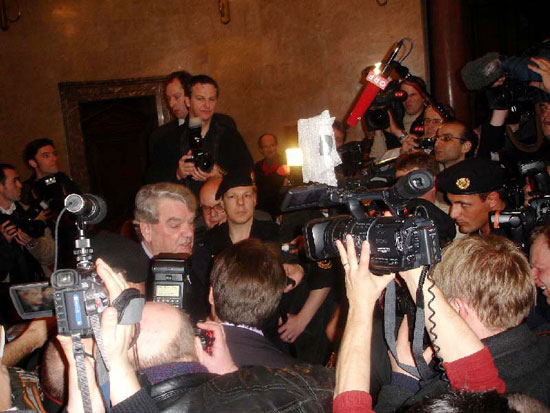 Since the government now realised, too late, that it had made an international spectacle of itself by my arrest -- I called it kidnapping -- it would have to find room for over sixty journalists; it also decided to allow in newspaper and television cameras for the first time in twenty years. Later, I saw a letter written by Judge Liebetreu to the secret police authorities (now renamed Regional Agency for the Protection of the Constitution and Combating Terrorism -- Landesamt für Verfassungsschutz und Terrorismusbekämpfung), displaying real panic about the mounting international interest. Dated February 2, 2006, eighteen days before the trial, the letter requested the "prompt introduction and application of appropriate security measures" for guarding the courtroom and securing the criminal trial itself: Media interest in this trial is already enormously large. Countless television teams and journalists, mainly foreign, in fact from around the entire world, have announced their coming, mainly via the Internet. So the letters arriving were entirely in favour, "fan mail". Shut away in my cell with no access to radio, television, or newspapers, and receiving no mail at all, I was unaware of all this media interest. Kresbach informed me that Judge Liebetreu had indicated that if I "played along" I would be given a sentence which would result in my immediate release. I believed him. My friends contacted the major television programmes in London. The biggest, BBC's Newsnight -- hosted by tough commentator Jeremy Paxman -- offered to fly me back to London first-class straight after my release that afternoon, in return for an exclusive live broadcast.