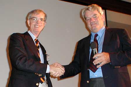University professor Thomas Mahl and David Irving, who chaired the Real History USA convention