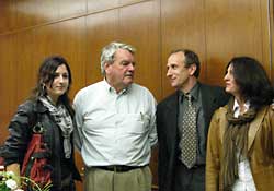 Left: The student Gabriela who introduced Mr Irving to the audience, with her parents