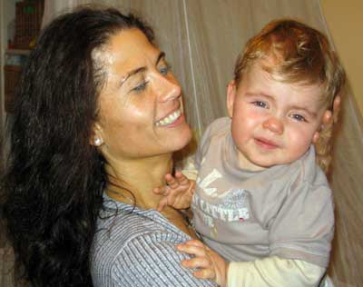 Réka comes round at midday to cook lunch for me, and I interrupt my writing briefly to play with her little boy Hunor: he is fascinated by computers, and of course finds my Mac much easier than his mother's PC.