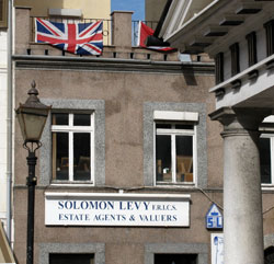 Beneath a dirty and twisted Union flag, one of many Gibraltar businesses that do not seem to be wholly AryanA Manchester man behind me, who has taken up residence in this tax-free colony, tells me in a loud and perhaps disapproving voice, "There are seven synagogues on the Rock." Until ten years ago the colony's chief minister was (for twenty-three years) Sir Joshua Hassan, and he was a Jewish lawyer. So much for Britain abiding by her treaties, as Adolf Hitler might have mocked.