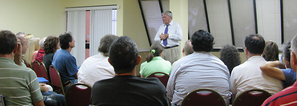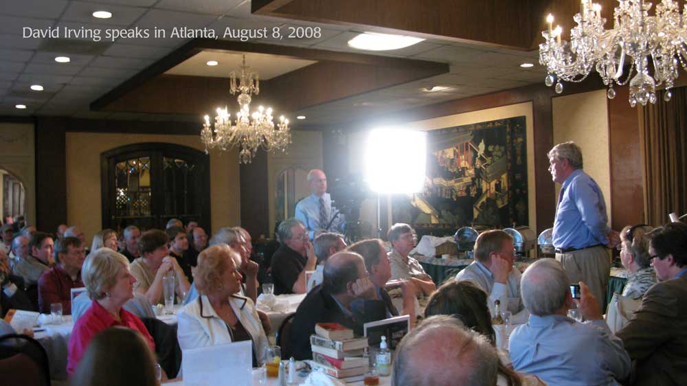 Above: David Irving speaks in Clearwater, Florida, on August 22, 2008