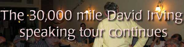 WHERE IS DAVID IRVING SPEAKING IN THE USA? Apply for details. Register at the door, or cheaper online [link]. A NEW LIST OF CITIES HAS NOW BEEN POSTEDNever be photographed with a glass in one hand, is one well known maxim for a public figure; to which I must now add another - nor with an enthusiastic re-enactor in SS uniform.