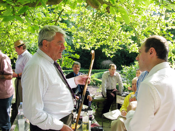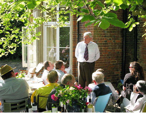 Fifty or sixty friends pack onto the terrace behind the house. An interesting discussion develops, covering much ground in history, before I begin my real talk around 5 p.m. on The Nazi Leaders and Westminster -- "which were the more corrupt?" (It turns out that Heinrich Himmler was the least corrupt financially of all -- so perhaps corruption is not a bad thing in the long run: it keep Very Important People's minds occupied with constructing duck-islands, dredging moats, and watching porn movies, rather than with exterminating populations.)