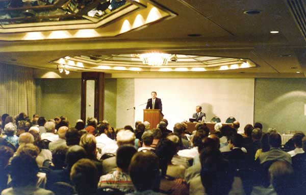 On another matter, I inform BBC Wales: "Okay, I have been upstairs to the archive room to see what I still have after the 2002 Catastrophe [when all my property was seized]. The good news is that I have found a ten-inch reel of 16mm color film -- that is about an hour of film footage -- which we shot in 1989 during my speaking tour of South Africa. The labels will help you to identify locations. I was staying as Clive Derby-Lewis's guest in Johannesburg. You may well find footage of me with Clive on that [see below, in Durban] ... You can borrow film on your honour to return it. (I say that because in 1964 I lost my entire tapes of interviews with Dresden airmen and air raid survivors; John Terraine borrowed them for a BBC programme, and they were lost by him and never returned.)"