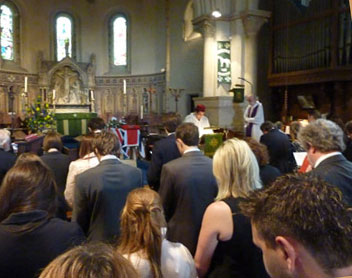 After we follow the coffin into the church, I discover to my astonishment that it is packed to the eaves, with perhaps three hundred people crowding the pews.