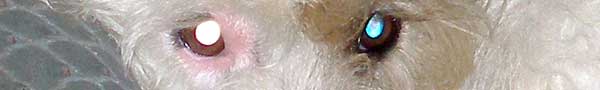 Not a trace of guilt on the hound's face when we next meet, just cocks his head to one side, twinkles at me with one pink eye and one blue, and looks harmless -- like Tintin's pooch Snowy.