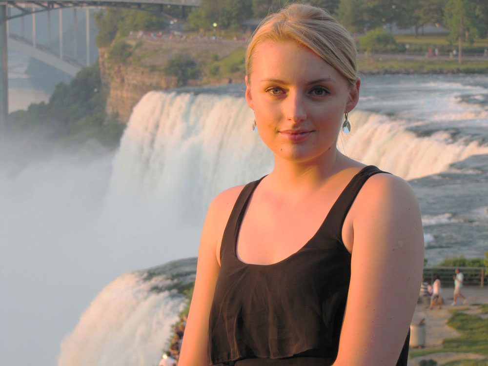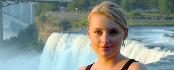High point of the tour: With Martyna driving, we reached the Niagara Falls, and I spoke to an appreciative audience of Americans and Canadians who came over the bridge (background).Saturday, June 30, 2012
