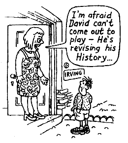 SUSAN A. writes: "You recently sent me a snail mail letter re your various speaking engagements. You mentioned 'the Holocaust, whatever that was,' and that struck a nerve. I don't understand what was done to you to make you so angry that you would 'flip off' such an incredibly awful, profound life-changing event, but whatever it is, I think you are just really pissed off and exhibiting an "I'll show you persona." Get over it. You are -- or could have been -- one of the most respected historians ... but you got caught up in this pissing contest. Please take me off your email list."