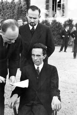 I have paid a bundle of money to Getty for the front-page Goebbels photo by Alfred Eisenstaedt (altho' no doubt St Martin's Press already paid the licence fee in 1996), and spend the evening remaking the artwork for the jacket for our reprint. Fonts are a minor problem.
