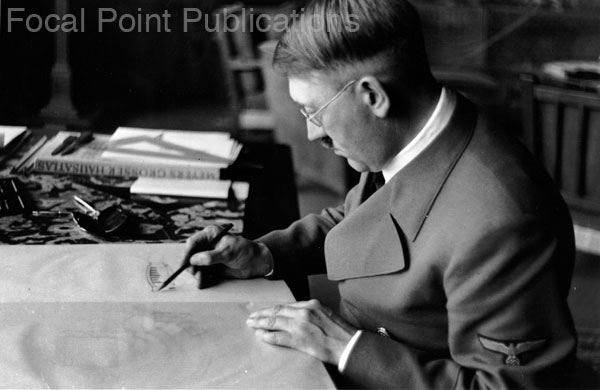 Hitler wears glasses as he sketches an architectural idea; photographed at the Berghof by his adjutant Nicolaus von Below. HUBBARD COLLECTION. From: David Irving: The War PathThursday, June 7, 2013