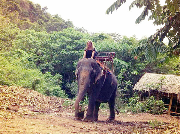 J. sends another photo: "Went elephant trekking yesterday! Now in Ko Lanta."