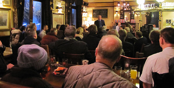 Into Farnham to load up boxes of books, then on into the West End. The meeting room gradually fills, and then even more come until there are over seventy and standing room only. I speak on Hess, then we have an interval, and Hugo, who was working for the British Military Government in Berlin when Hess died, gives a very cogent talk on the situation of the Four Powers in Berlin and the Rudolf Hess case.