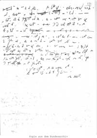 I READ the British Military Police report on the Rudolf Hess death [August 1987] again. It does seem prima facie pretty conclusive, but then such reports usually do; but the handwritten "suicide note" is strange, as it uses the very old-fashioned hs letters for ß which I have only ever seen before in the Aumeier manuscripts, and in none of the genuine Hess manuscripts which I had the privilege of reading; and the "suicide note's" German is illiterate, which is not characteristic of him at all.