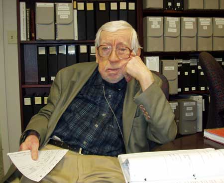 John Taylor has been archivist at the Modern Military Records Division of the National Archives as long as any historian can remember. Photographed on Thursday, June 24, 2004 in the Finding Aid room at the new Archives II building at College Green, Maryland, USA, Taylor, now 83, arrives every morning for work at six a.m. He is the walking, working, brain and card-index of the archives. |