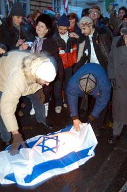 system. The crowd burnt the Israeli flag, as an