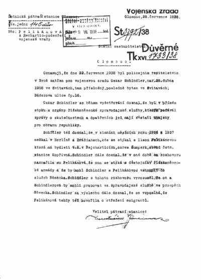 16 Báderova St., Svitavi. Under interrogation Mr. Oscar Schindler