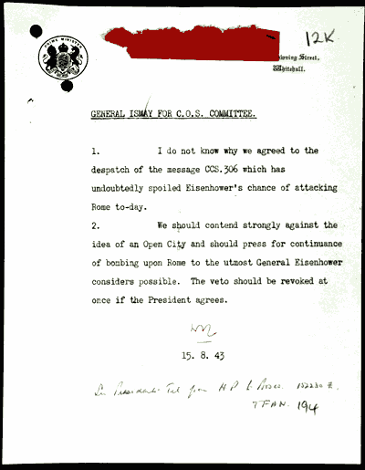 THE LONDON EVENING STANDARD commissioned historian / journalist Andrew Roberts to write a first report this week on David Irving's Churchill's War, vol. ii; Roberts said that Churchill did not want the bombing of Rome. The archives speak a different language. | |
